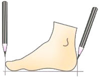 In order to accurately determine your foot size, stand barefoot on a piece of paper and trace your foot with a pencil. For more accuracy, the pencil should be pressed tightly against the leg and held slightly at an incline (tip to the foot). Now measure the length of the print, round it up.