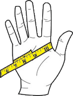 | Palm circumference cm. | 18-20 | 21-22 | 23-24 | 25-27 | 28-30 | ![]() |